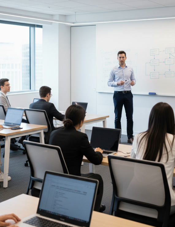 Notre approche allie conseil stratégique, structuration organisationnelle et expertise pédagogique. En collaboration avec vos équipes, nous définissons des objectifs clairs, concevons des parcours adaptés et mobilisons des méthodes actives et innovantes (projets, e-learning, coaching). Résultat : des formations et dispositifs internes qui renforcent durablement les compétences de vos collaborateurs et la performance globale de votre organisation.